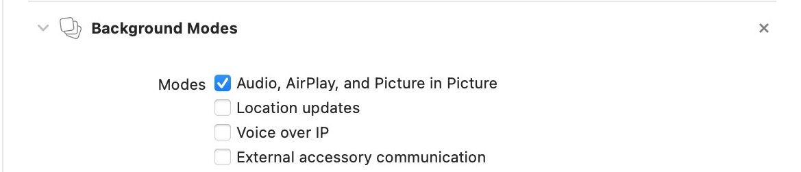 如果使用画中画需要Xcode设置打允许后台播放 Audio, AirPlay, and Picture in Picture