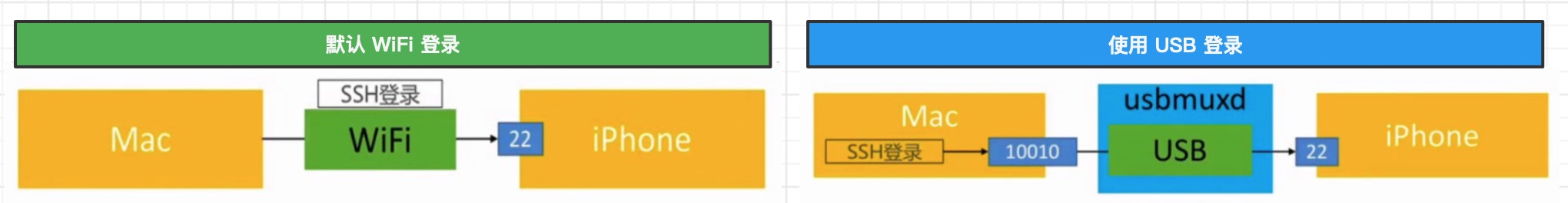 为了能够让Mac终端中的命令行能作用到iPhone设备上,我们首先需要让 Mac 和 iPhone 建立链接。当我们连接远程服务器时,可以通过 ssh 的方式进行连接,同样的操作适用于 iPhone。我们可以把 iPhone 当做一个远程服务端,通过 ssh 进行连接。