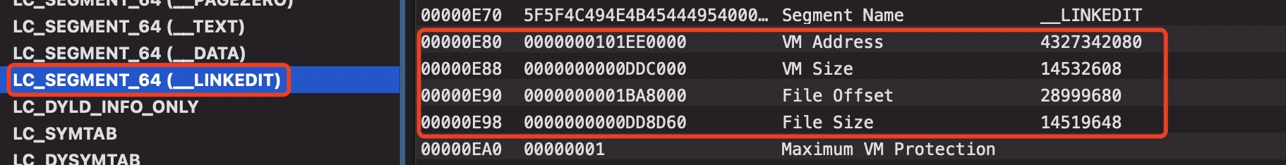 __LINKEDIT段的虚拟内存地址和物理内存地址