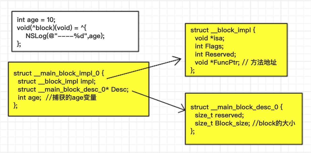 // block捕获auto局部变量时,会在结构体内部创建一个age
