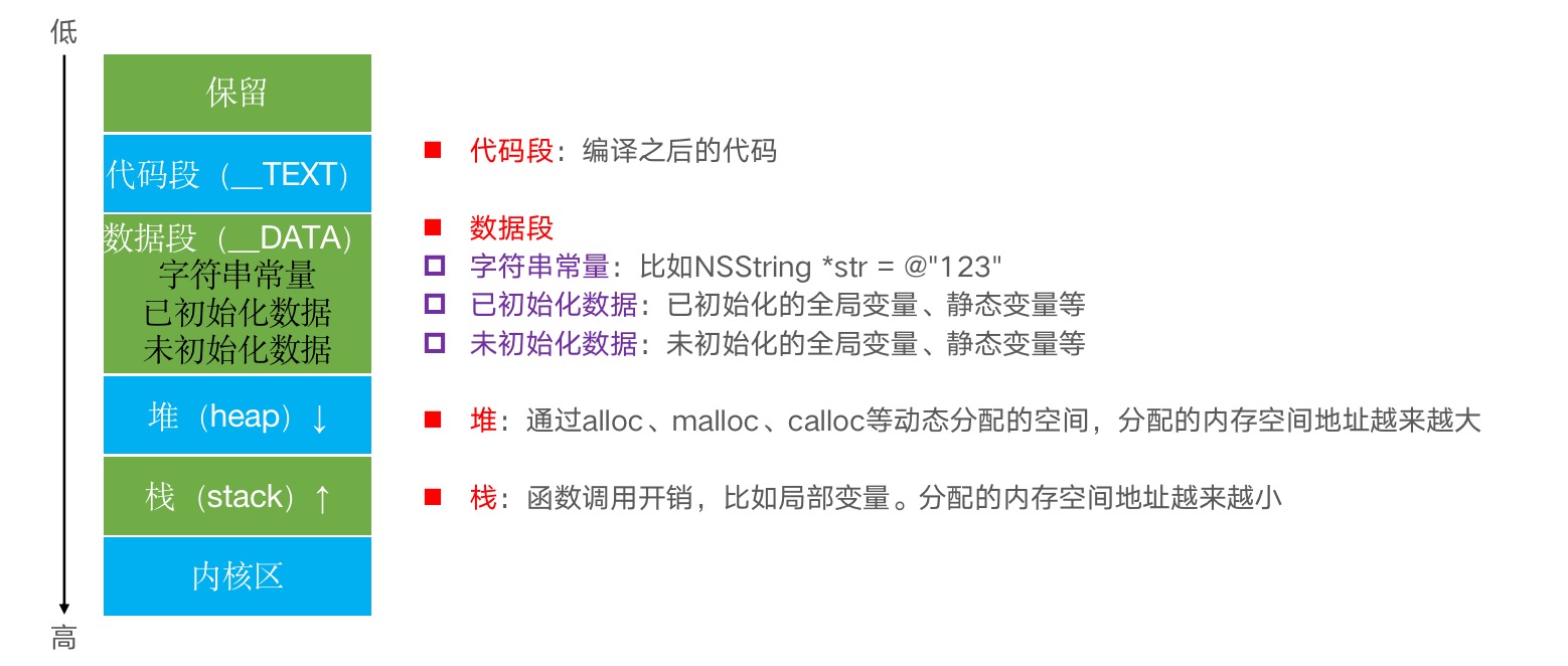 通过打印全局变量、静态变量、局部变量、对象 指针地址的方式进行验证: