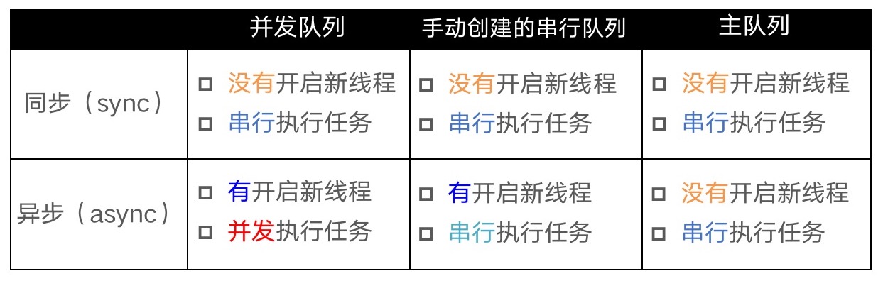它们之间的关系如下图,图片来源小码哥的MJ老师,注意:两个async共用一个手动创建的串行队列时,只会产生一个新线程:
