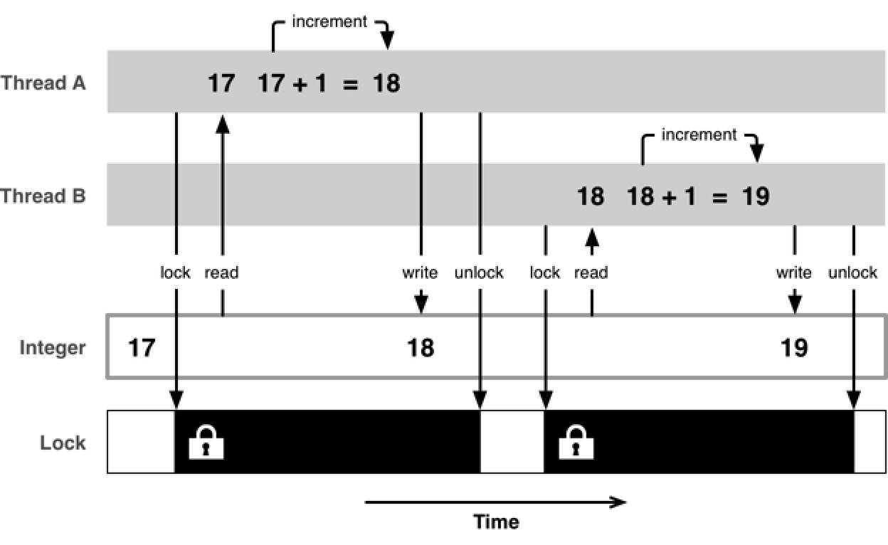 在线程A访问资源时,对资源进行加锁,访问结束后,对资源进行解锁。在加锁期间,其他线程无法访问资源。线程A解锁后,线程B访问资源,执行上述加锁解锁操作。