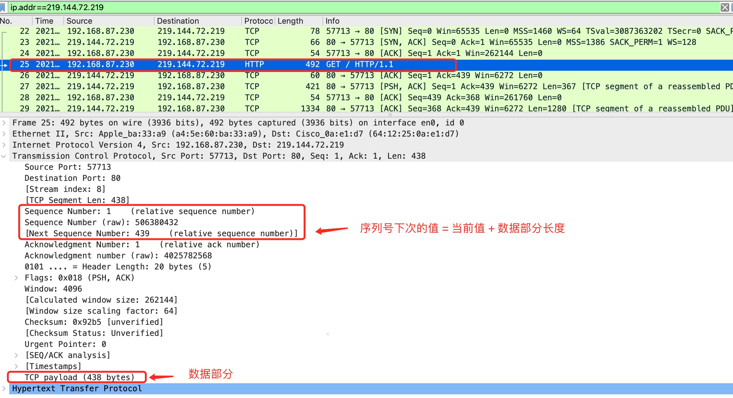 在三次握手成功之后,客户端正式发起HTTP请求,序列号的值在握手成功之后 =