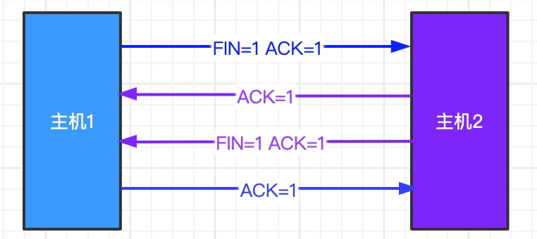 主机2也发送了FIN报文段时,表示主机2告诉主机1,主机2已经没有数据要发送了 - 第四次挥手:当