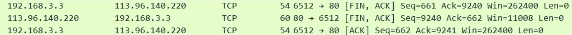 有时候在使用抓包工具的时候,有可能只会看到“3次“挥手,这其实是将第2、3次挥手合并了。