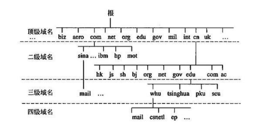 .com(公司)、.net(网络机构)、.org(组织机构)、.edu(教育)、.gov(政府部门)、.int(国际组织)等