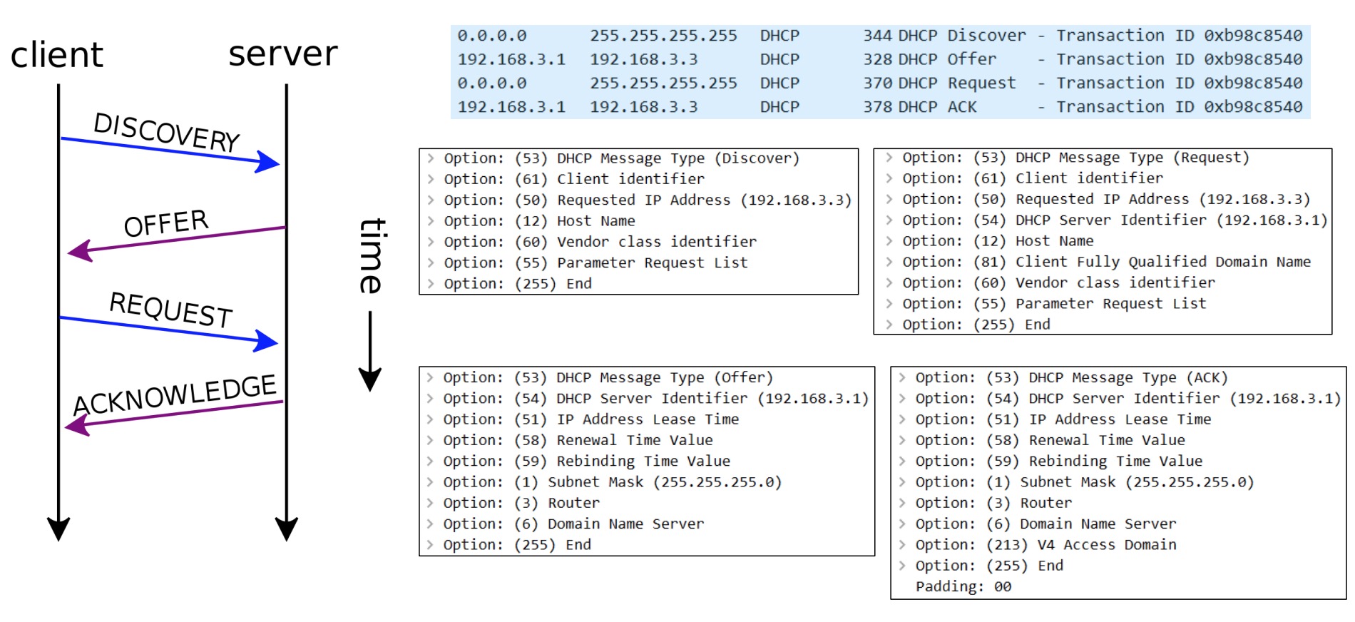 DHCP 分配IP可以分为四个阶段,DISCOVER、OFFER、REQUEST、ACKNOWLEDGE: