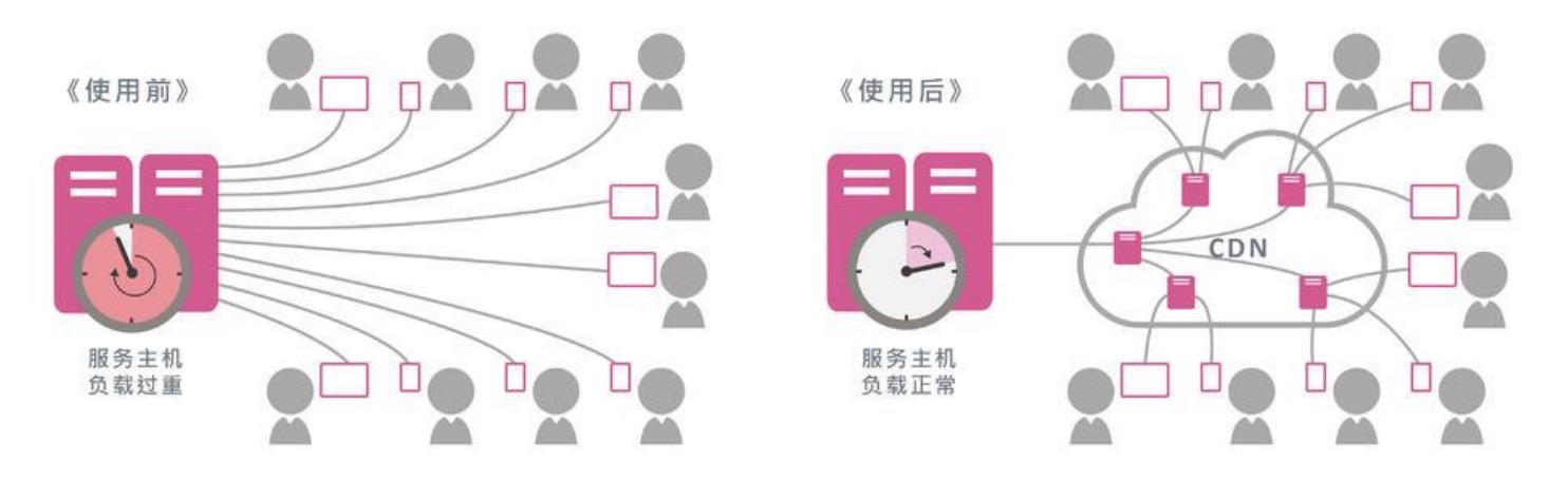 内容分发网络(英语:Content Delivery Network或Content Distribution Network , 缩写:CDN),是指一种透过互联网互相连接的电脑网络系统,利用最靠近每位用户的服务器,更快、更可靠地将音乐、图片、视频、应用程序及其他文件发送给用户,来提供高性能、可扩展性及低成本的网络内容传递给用户。使用CDN之前和使用CDN之后的对比如下图: