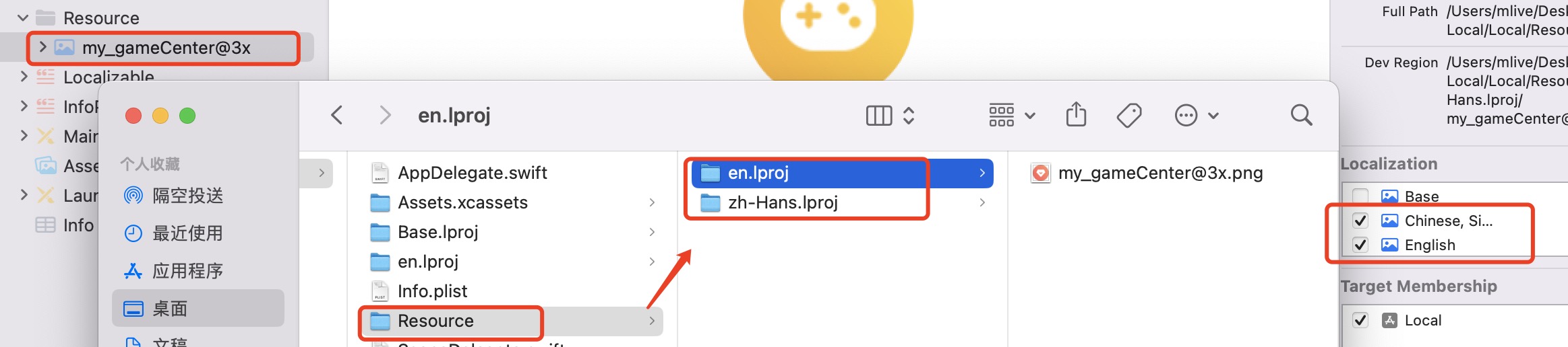 UIImage.init(named: NSLocalizedString("图片名称", comment: ""))第三种: 还有一种通过 Resource 文件夹进行管理图片,创建图片 Resource 文件夹,将图片放在文件夹下,选择将当前图片进行多语言适配,会在文件夹下产生同样的zh-Hans.lproj文件夹