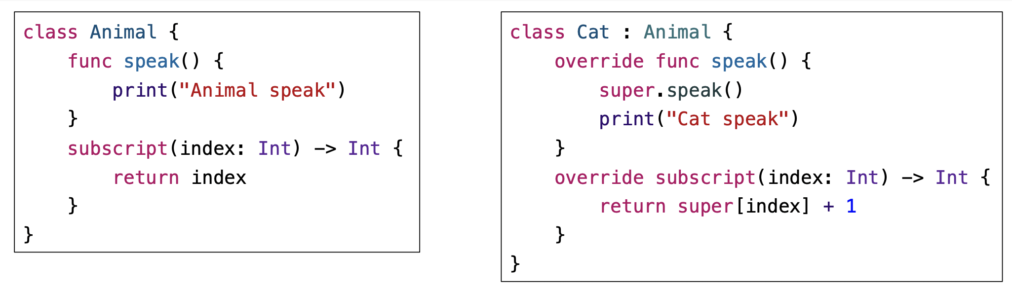 1. 子类可以将父类的`属性(存储、计算)`重写为`计算属性`。并且只能重写var属性,不能重写let属性
