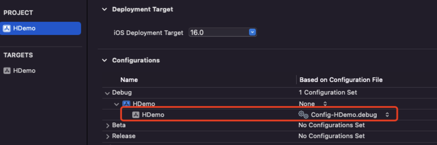 也就是说Xcode -> Target -> Build Settings里的信息,我们可以直接通过文件进行配置。这样的话我们就可以通过自定义 Configuration 文件来达到我们刚才的目的