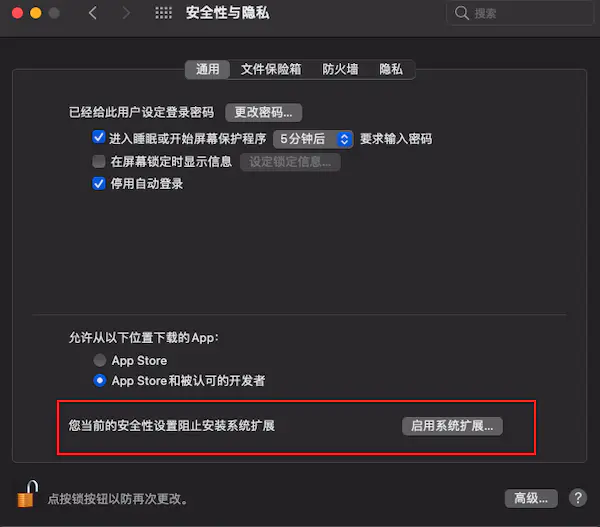 在系统设置里,可以看到“系统扩展”是关闭的。