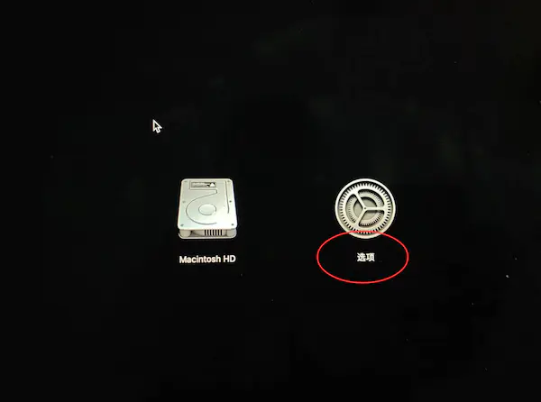 长按开机键,进入恢复模式,直到出现启动选项(连接多个显示器时,可能会出现黑屏情况,拔掉一个)